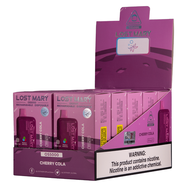 The Lost Mary OS5000 Cherry Cola offers a premium vaping experience with its long-lasting battery, high puff count, delicious flavor, and advanced mesh coil technology. It’s the ultimate solution for vapers seeking convenience, satisfaction, and an exceptional taste. Experience the difference today!