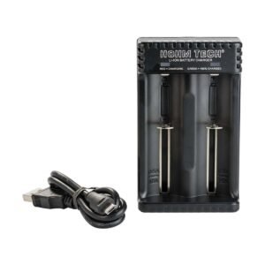 The Hohm Tech School 2 Channel Battery Charger is compact and portable, designed for convenient use. [Insert dimensions and material information here].