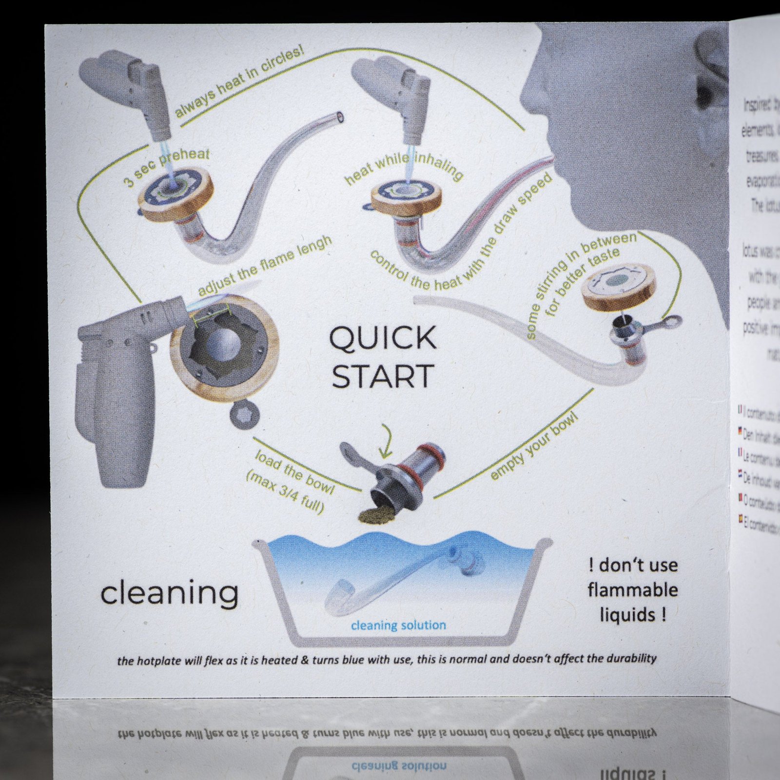 The Lotus harnesses all of its power from a jet flame. This is done by heating up the stainless steel plate in the centre of the lotus flower. As you inhale, cool air is drawn in then passes through between two stainless steel plates where the air is heated up to vaporizing temperature. The convection heat is then blasted down through your herb.