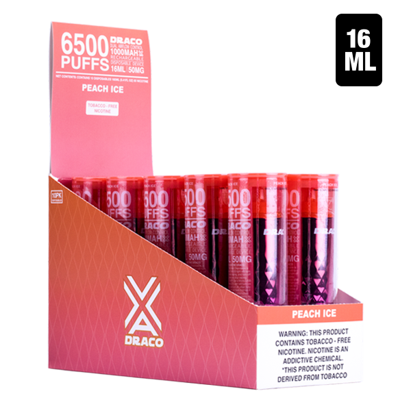 “I’ve tried so many disposables, and the Draco Peach Ice is by far the best. The flavor is amazing, it lasts forever, and the battery life is incredible!” – Sarah M.