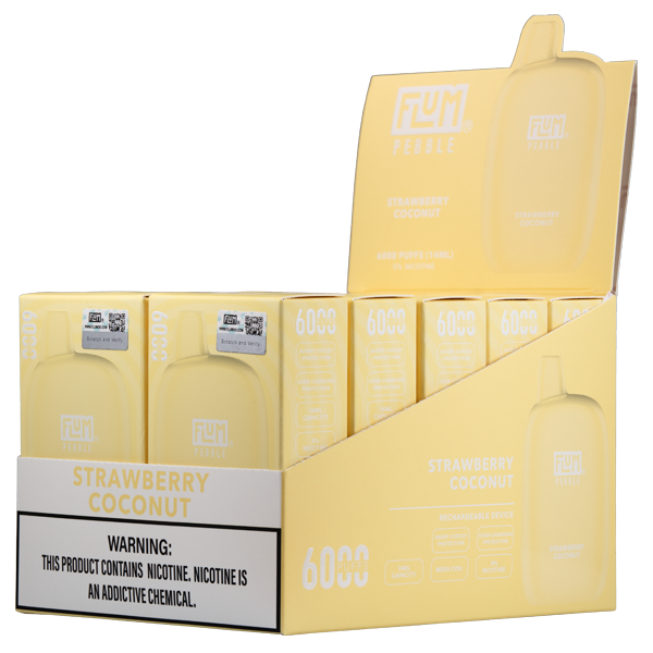 The Flum Pebble Strawberry Coconut offers an exceptional vaping experience, combining a delicious flavor profile, long-lasting battery, impressive puff count, and convenient rechargeability. Experience the difference today!